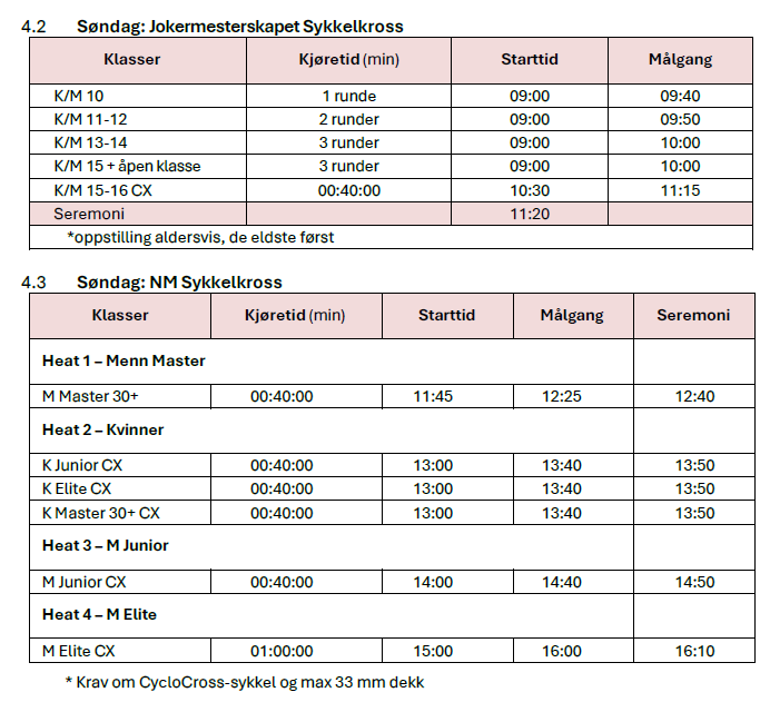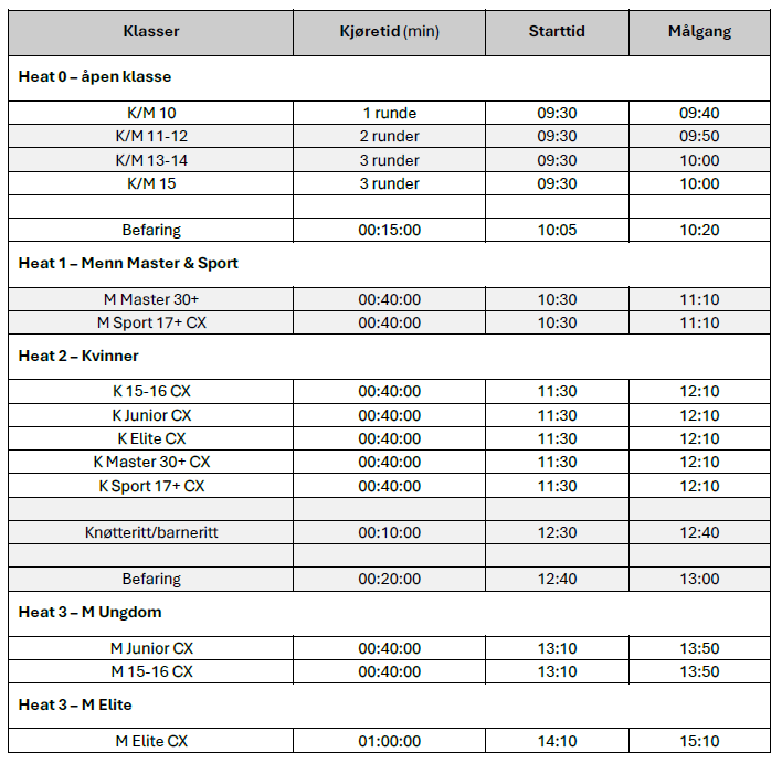 - MERK! det er samme løyper begge dager, både lørdag og søndag