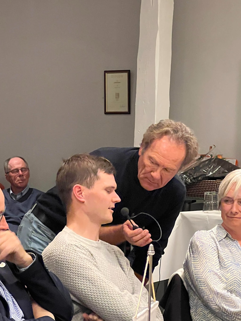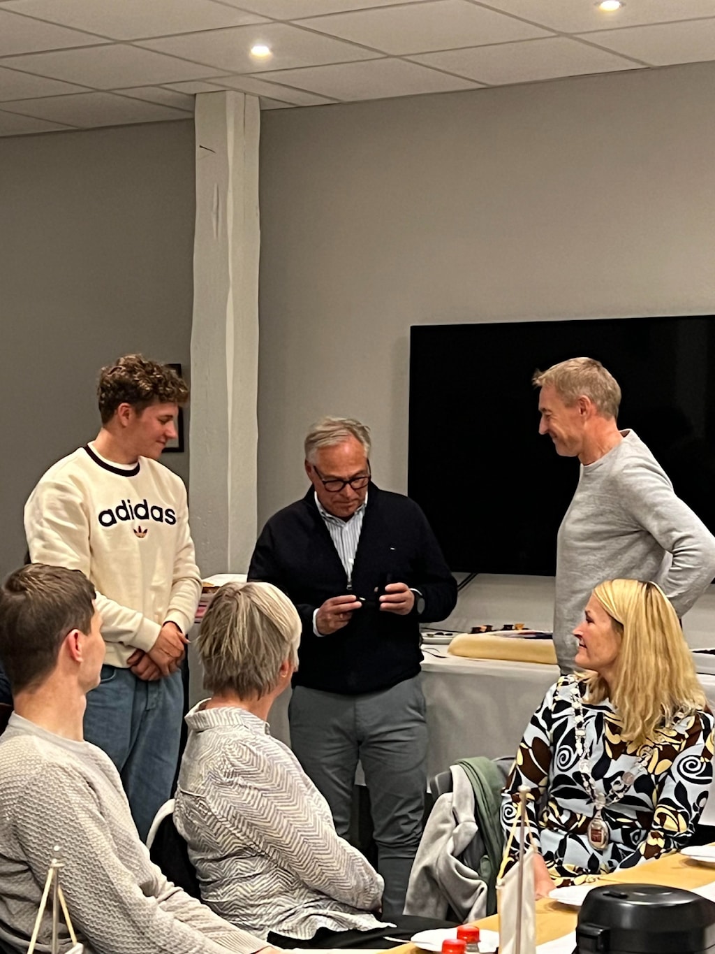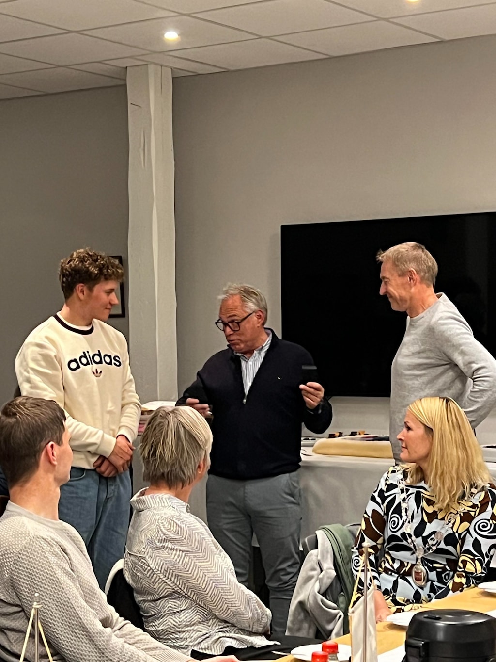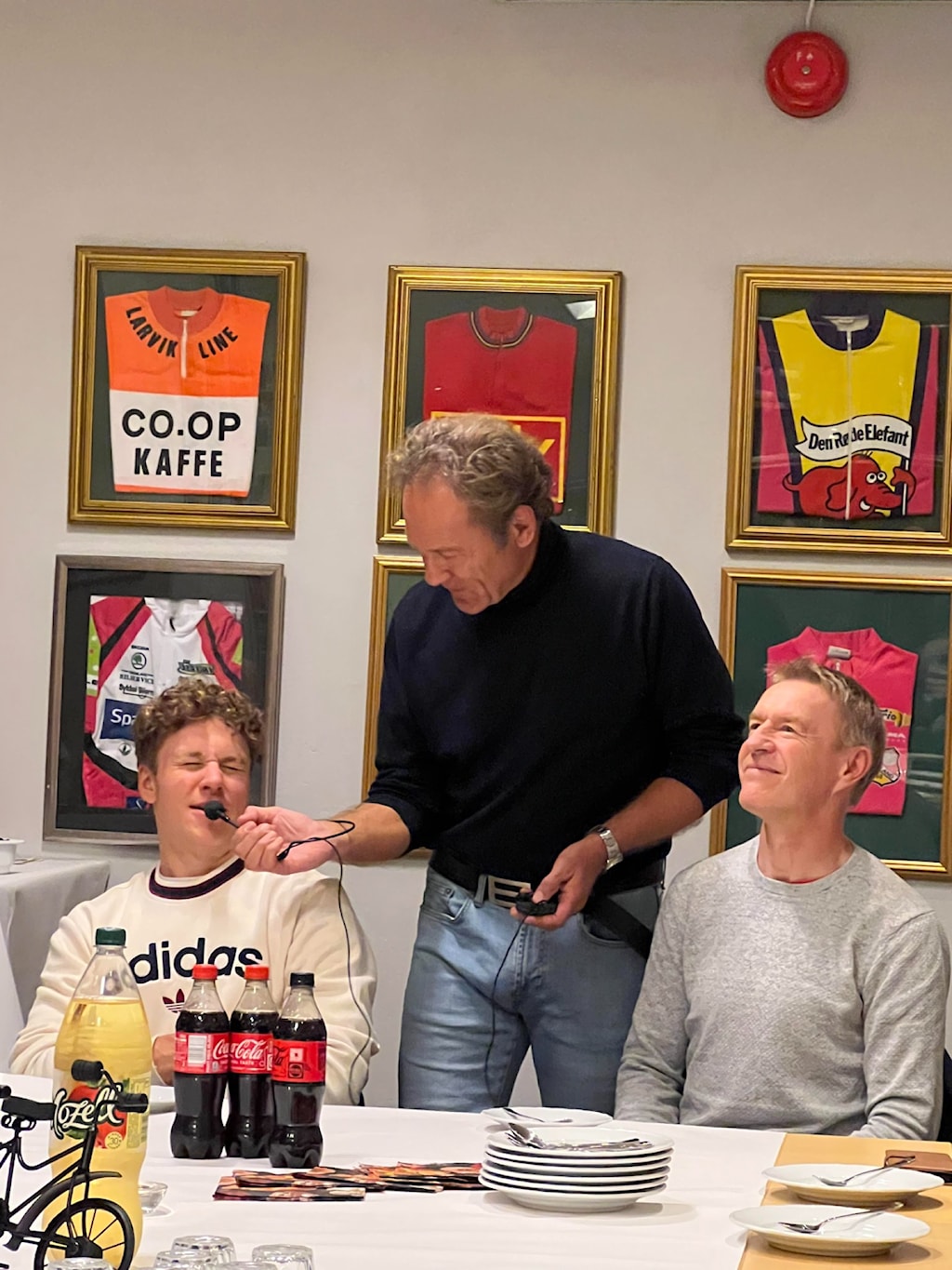 Jonas og Jørn får tildelt GSK hedersmerkeOrdfører Hedda Foss Five ville takke på vegne av kommunenordfører og kultursjef Guro Honningdal overrekker blomster på vegne av kommunenSkikkelig bløtkake som seg hør og børJon Rangfred intervjuer Jonas og JørnHyggelig samtale mellom Harald Tiedemann, Thor Martin Gunstad og Øystein EriksenDet var folksomt på medlemsmøtetSKRYT: Jonas Abrahamsen og Jørn Fjeldavlie fikk skryt av kultursjef Guro Honningdal og ordfører Hedda Foss Five under onsdagens medlemsmøte i Grenland Sykleklubb.
