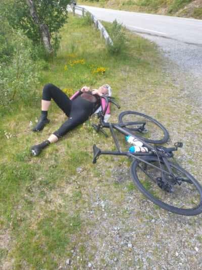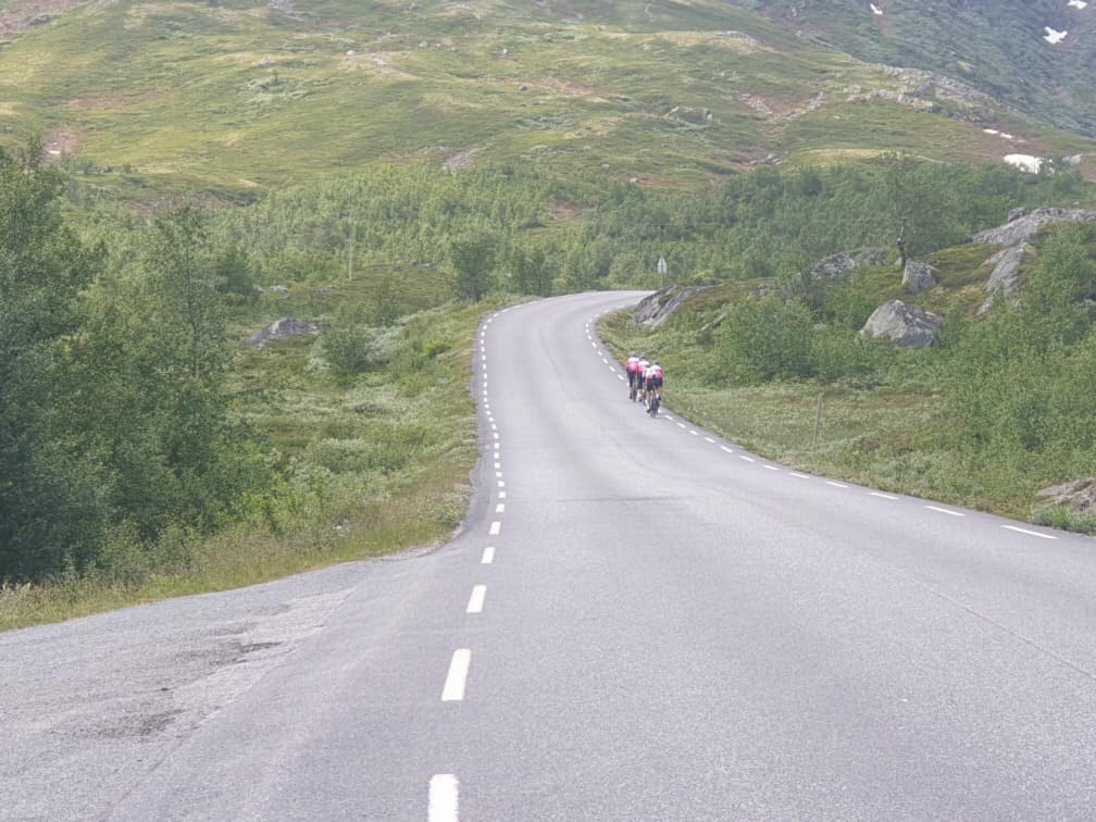 Det regnet når vi kom og det regnet når vi kjørte hjem. Det regnet ikke på rittdagen(ne). Etter en dag med organisering, pakking, justering, vekkedrag (Marius), litt skruing, spising og enda litt mer spising……. Var det klart for start, først gutta krutt. Alt var satt og bestemmelsene tatt. Det røyk i første bakke og på første matstasjon. For en sterk gjeng, bare å bøye seg i hatten å gratulere. Så var det dieselmotorene sin tur. Vårt motto gjennom hele oppkjøringen, har vært å ta vare på hverandre!! Det gjorde vi med godt humør, omtanke og maaange pauser. Vi kjørte inn i natten i nydelig vær. Over første fjell og en litt kaldere nedkjøring. Herlige sletter m en liten prosent nedover. En rask (alt for lang) stopp i Fagernes. Fornuftig kjøring til Beito, nok en gang alt for lang stopp. Med nytt tørt og varmt tøy. Bar det over Flya i de tidlige morgentimer. Alle med godt mot og sterke kropper. En herlig nedkjøring med påfølgende sletter. Da var livet godt 2-0 til oss og et fjell igjen. Her begynte det å melde seg litt vonter og søvn problemer. Vi tok en rask stopp og Haribo'en kom til sin rett. Etter hvert kom vi til Lom, men ingen bagasje. Så da måtte vi lete på retur bilen og det tok lang tid. Vi fant heldigvis sekkene våre og fikk skiftet. Vi spiste og drakk, men mistet motet ang tid. Så bar det i veg igjen. Nå skulle Sognefjellet bestiges. Mer en noen gang skulle vi få kjenne på lagfølelsen og se vakker bratt natur. Etter langt om lenge nådde vi toppen 3-0 til oss. Så var det å spise de berømte vaflene. De smakte himmelsk, men hvor var bagasjen vår…. borte igjen. Nedover bar det og vi snakker nedover m serpentin svinger. Biler, lastebil, campingbiler, sauer, sykkelister og røde kors. Da slo Pyse Grethe inn. Når bunnen var nådd og vi kunne sykle igjen, ikke bare bremse. Så var det 60 km pluss igjen. Og da skulle det kjøres. Rittets høyeste tempo ble satt. Vonter og div forsvant som dugg for solen, men farten holdt ikke så lenge. Vi fortsatte i et noe lavere tempo. Over siste knekken og ned mot Sogndal. Langs fjorden som føltes veeeldig lang, men plutselig var vi i mål. Stolte spiste vi pølse og medalje fikk vi. Lag bilde rakk vi aldri å ta pga. div. Vi ble klokket inn på 20.? timer og hadde effektiv tid på 18.24! Snakk om lagseier. Takk for en fantastisk tur gutter. Trond Loen blei dessverre syk og kunne ikke være med oss. Takk til Ann Kristin Strøm som var med oss til Lom med godt bidrag. Takk til fotografen vår Asgeir Elvestad