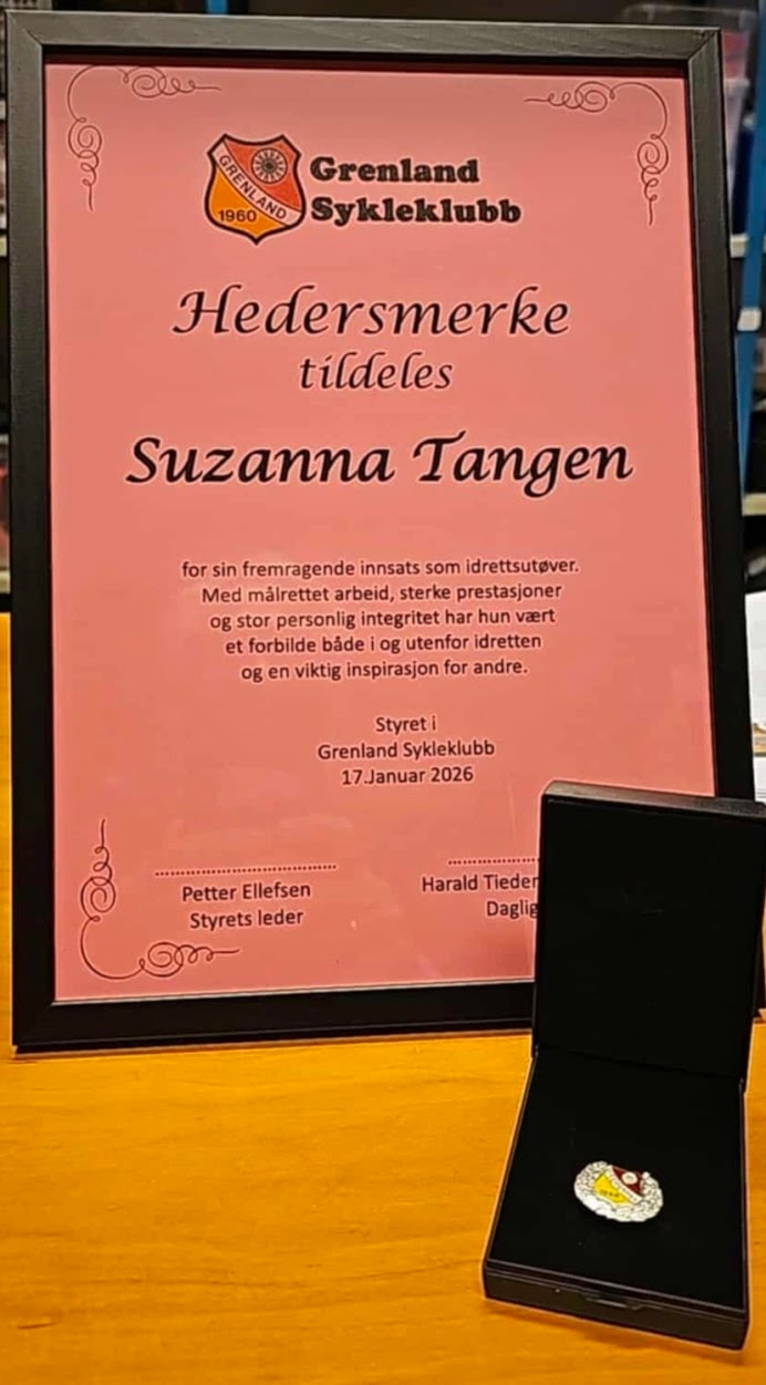 Suzanna får hedersmerket for sin fremragende resultater, innsats som idrettsutøver. Med målrettet arbeid, sterke prestasjoner og stor personlig integritet har hun vært et forbilde både i og utenfor idretten og en viktig inspirasjon for andre.